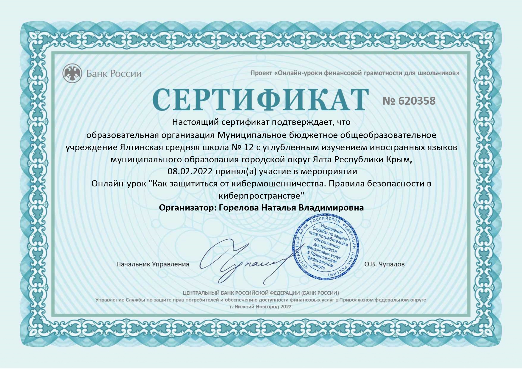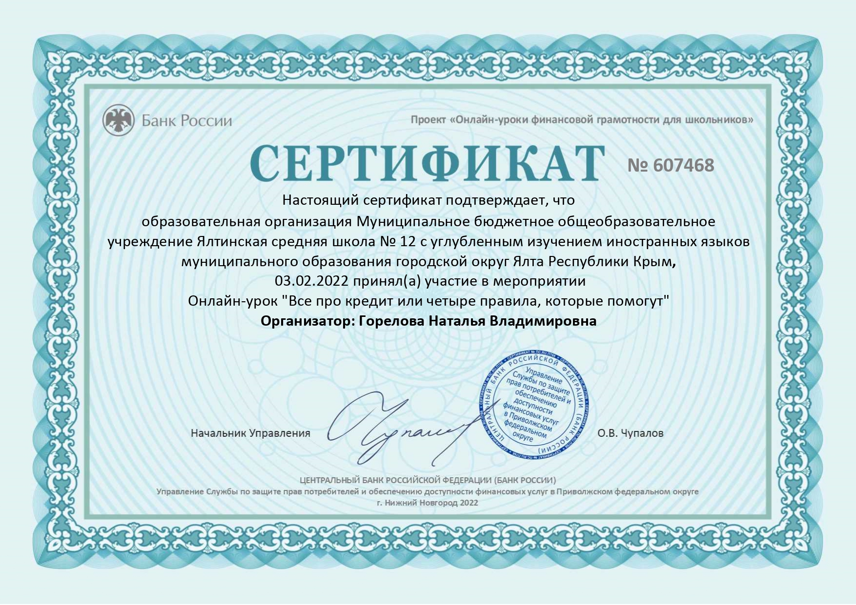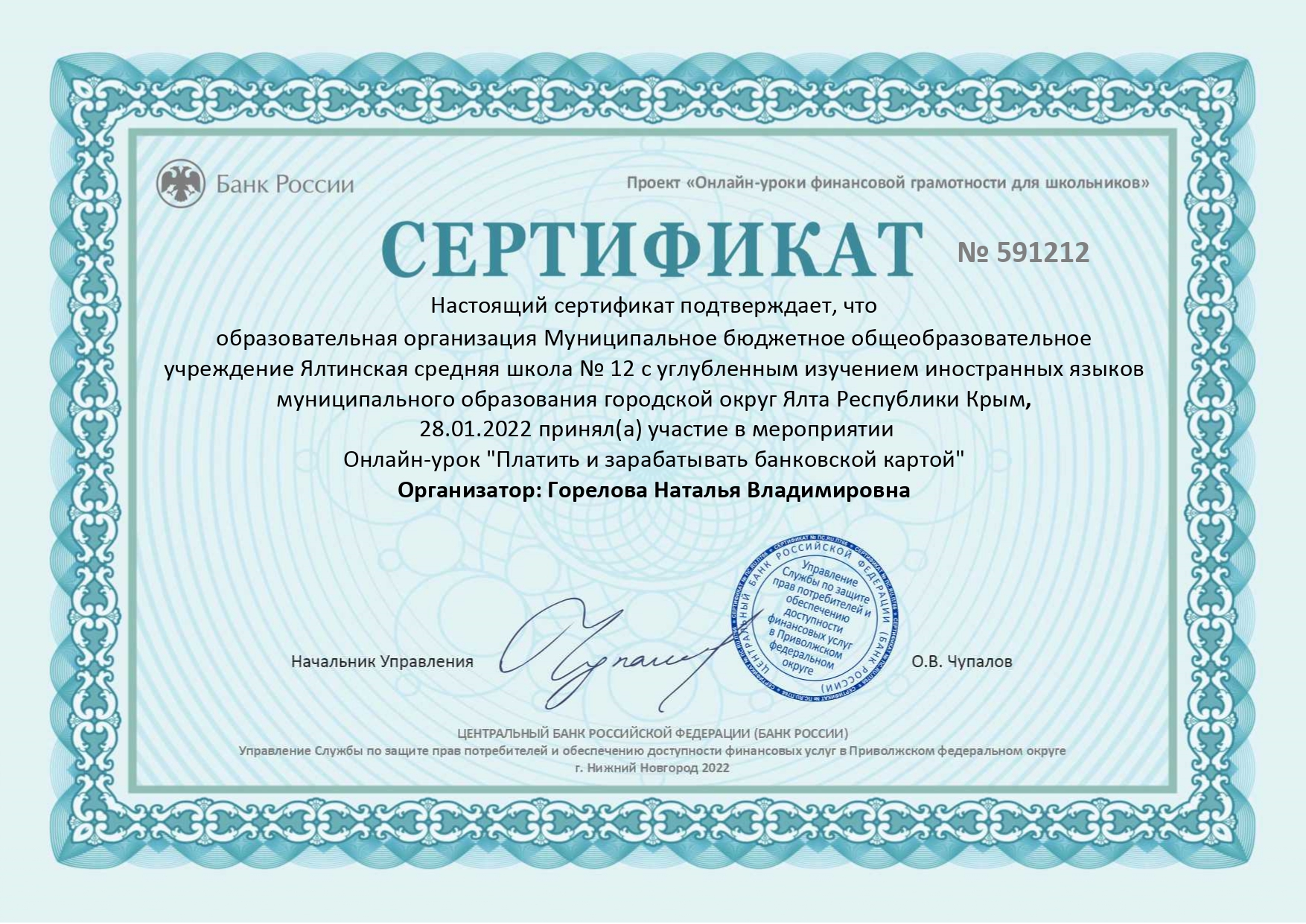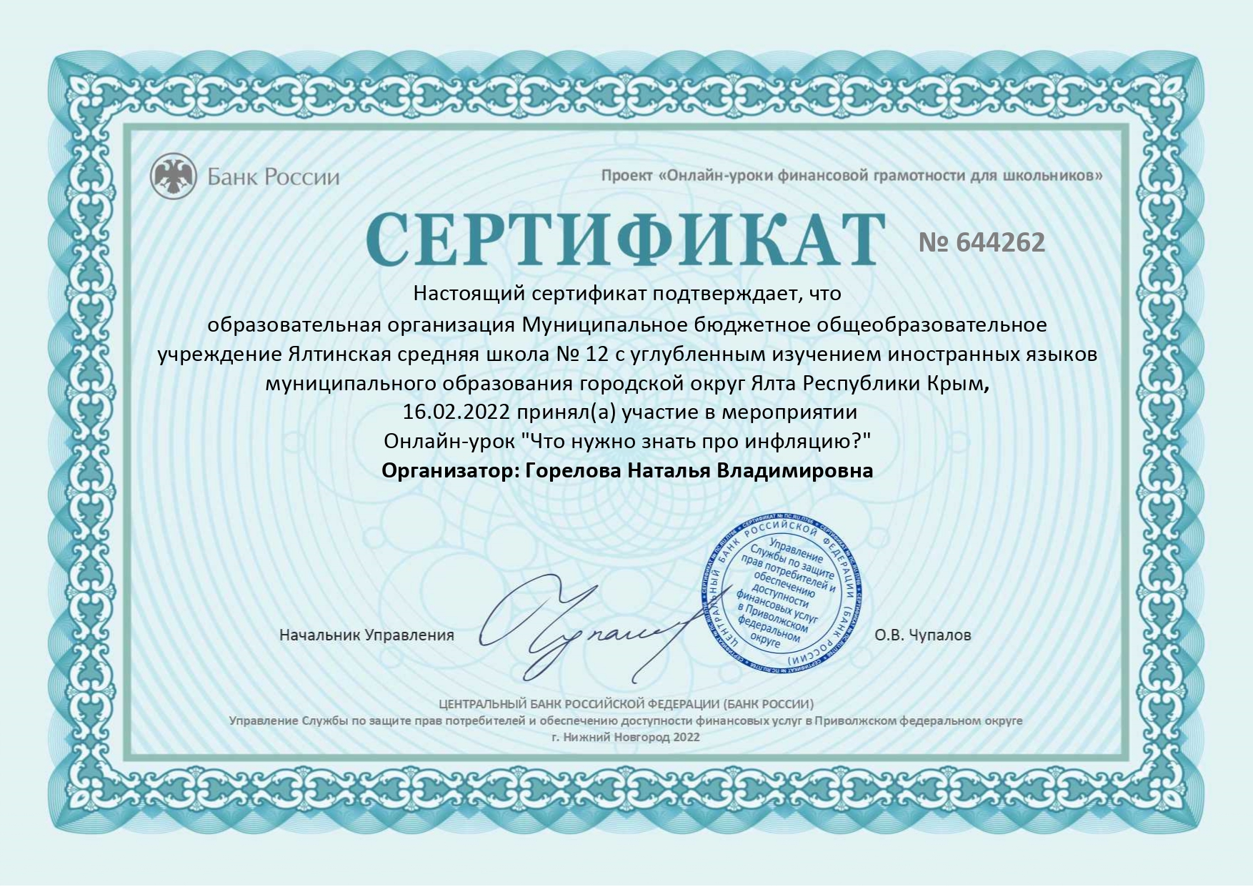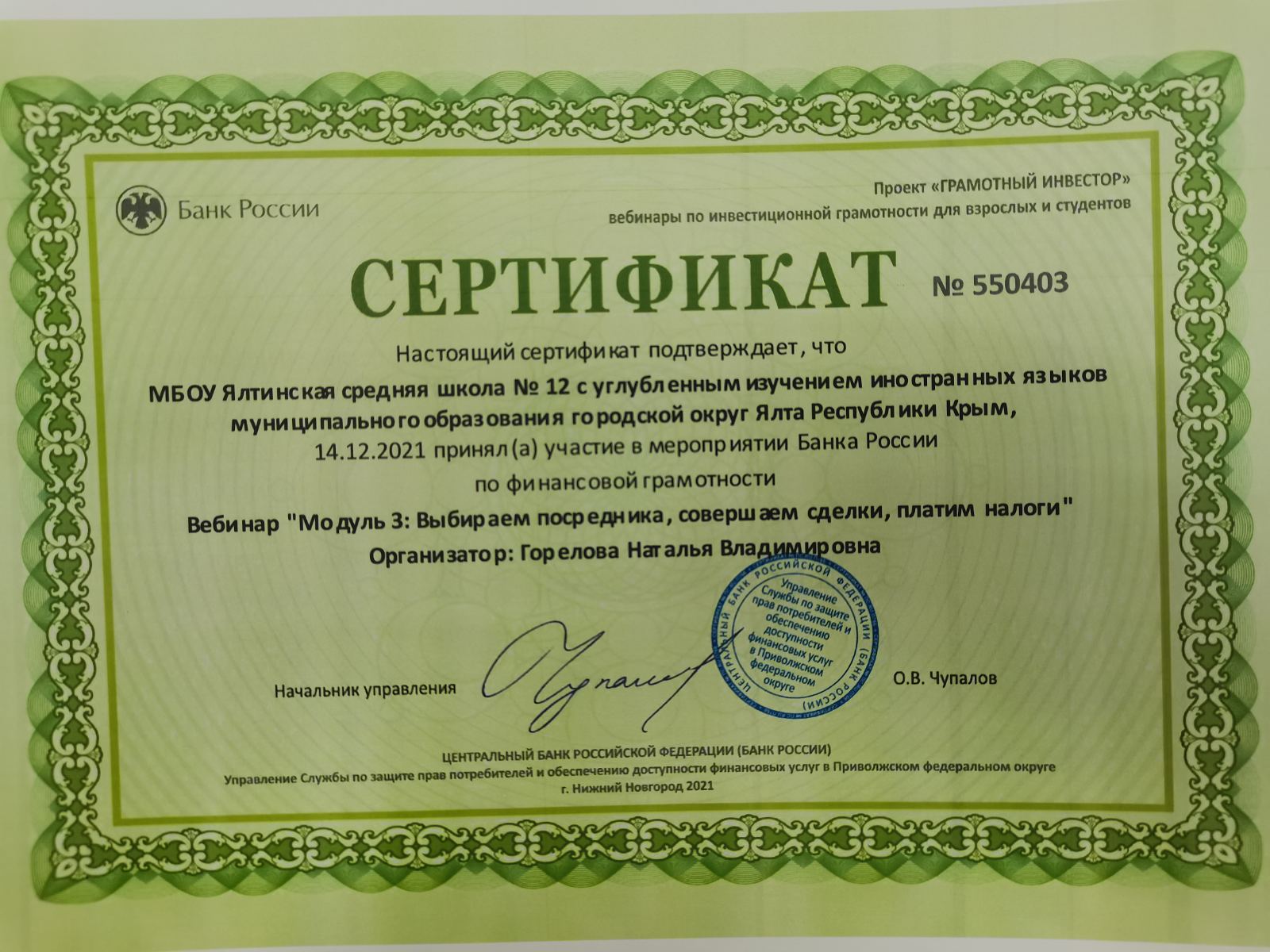 МБОУ «Ялтинская средняя школа № 12 с углубленным изучением иностранных языков» муниципального образования городской округ Ялта РК по теме «Формирование функциональной грамотности как приоритетное направление развития образования Республики Крым» (директор - Валентина Кабанова закреплен статус региональной инновационной площадки (РИП).