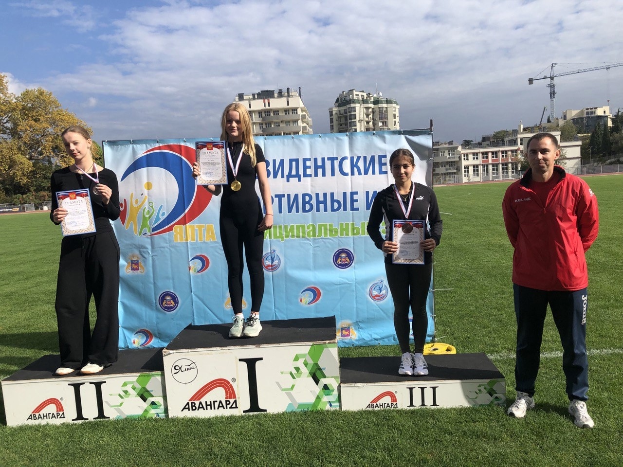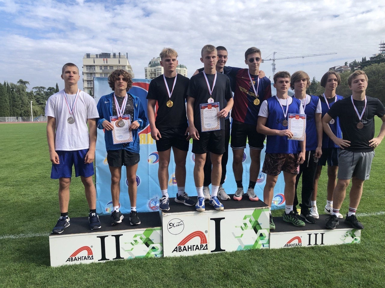 А в личном зачете по троеборью (спринт, метание, прыжки в длину) у нас полный комплект наград: