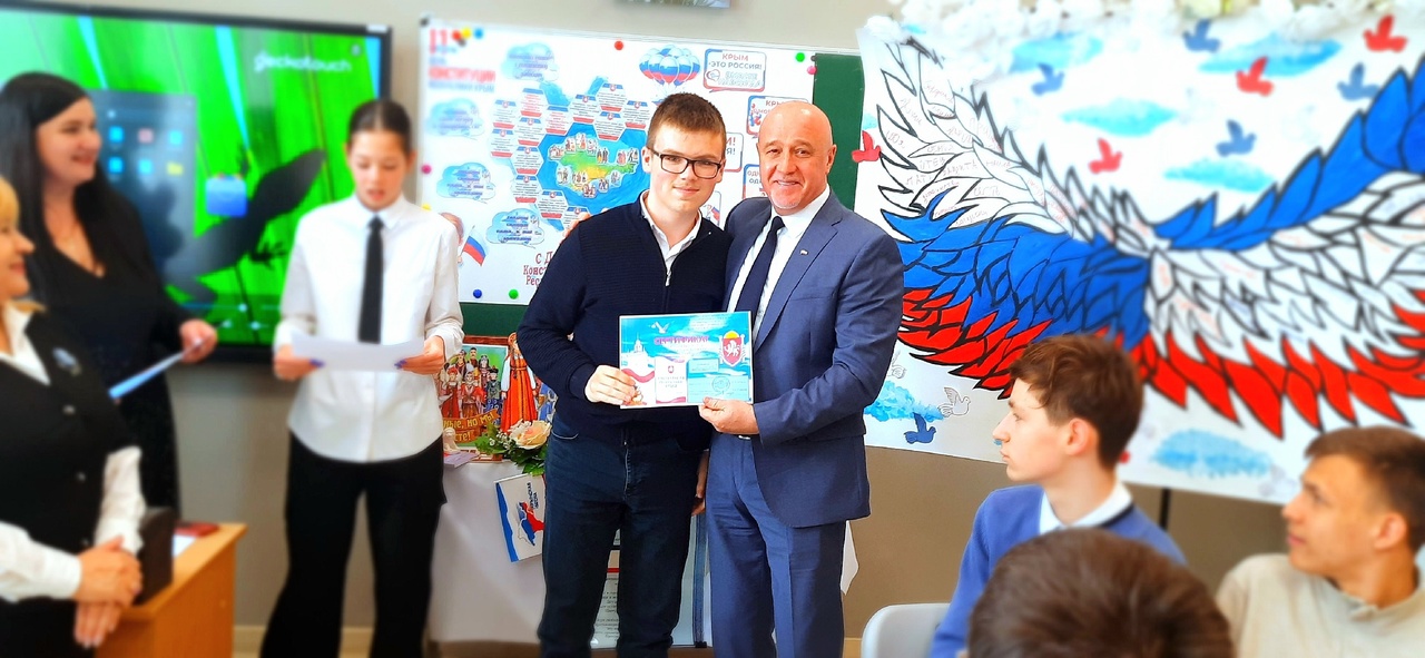 🔔По окончании урока Валерий Владимирович Коваленко преподнес памятный подарок-Конституцию Республики Крым- символ единства и сплоченности крымского народа, гражданственности и патриотизма.
