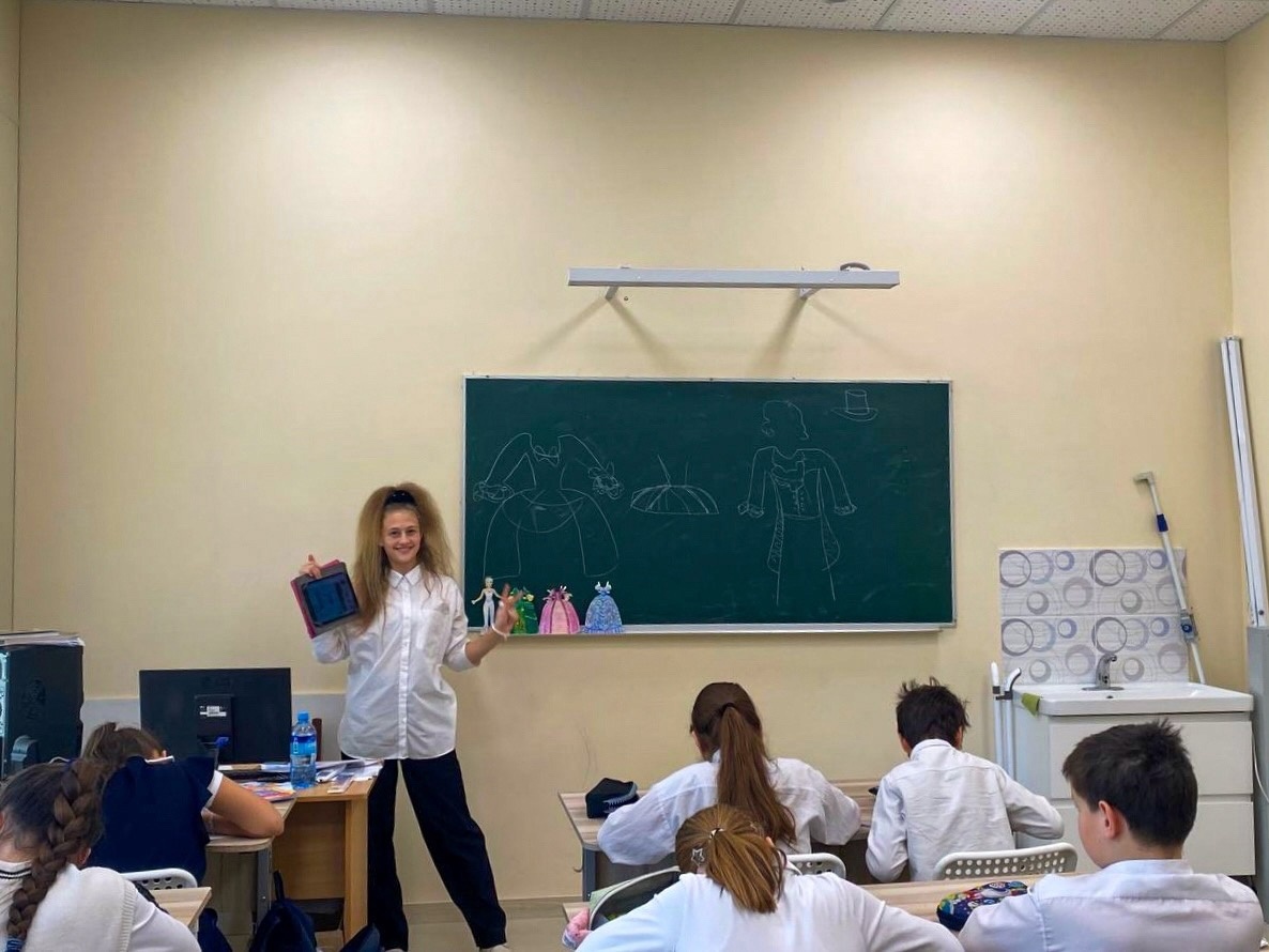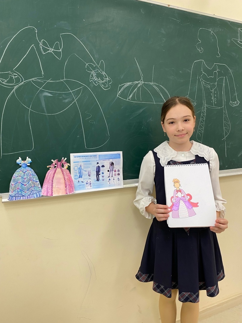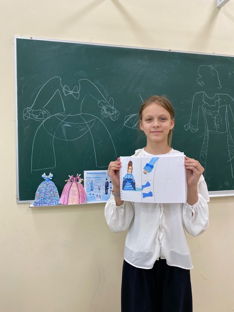 🎓Министр информации школьного ученического самоуправления Арина Антонова провела внеклассное мероприятие по изобразительному искусству в 5-Б классе ( классный руководитель Бурова Ольга Дмитриевна) «Одежда говорит о человеке".