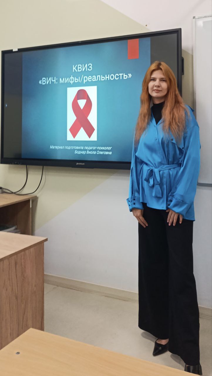 1 декабря 2025 года в рамках Всемирного дня борьбы со СПИДом классные руководители, совместно с педагогом-психологом школы Боднар Виолой Олеговной провели цикл просветительских мероприятий для учащихся 10-11 классов под девизом "Знать, чтобы Жить", направленных на повышение осведомлённости о вопросах профилактики ВИЧ-инфекции.