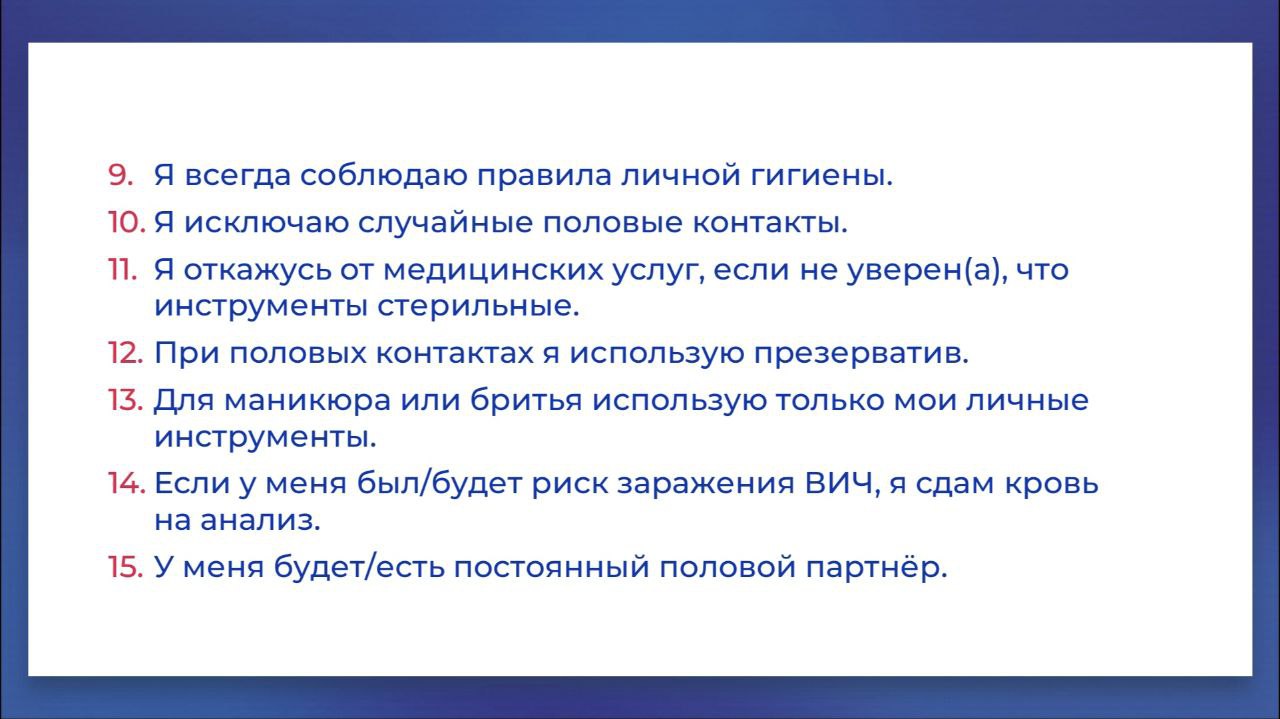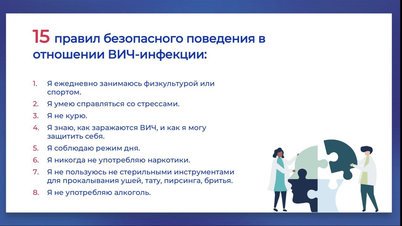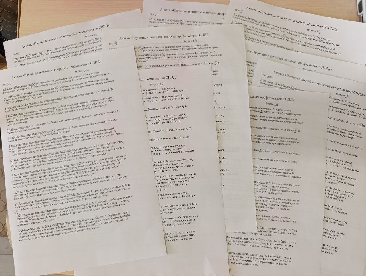 В ходе анонимного анкетирования старшеклассники продемонстрировали хороший общий уровень знаний о путях передачи ВИЧ и основных мерах профилактики. Особую активность учащиеся проявили во время информационных бесед, где в доверительной атмосфере обсуждались актуальные вопросы: современные данные о передаче вируса, разбор распространённых мифов и эффективные способы защиты.